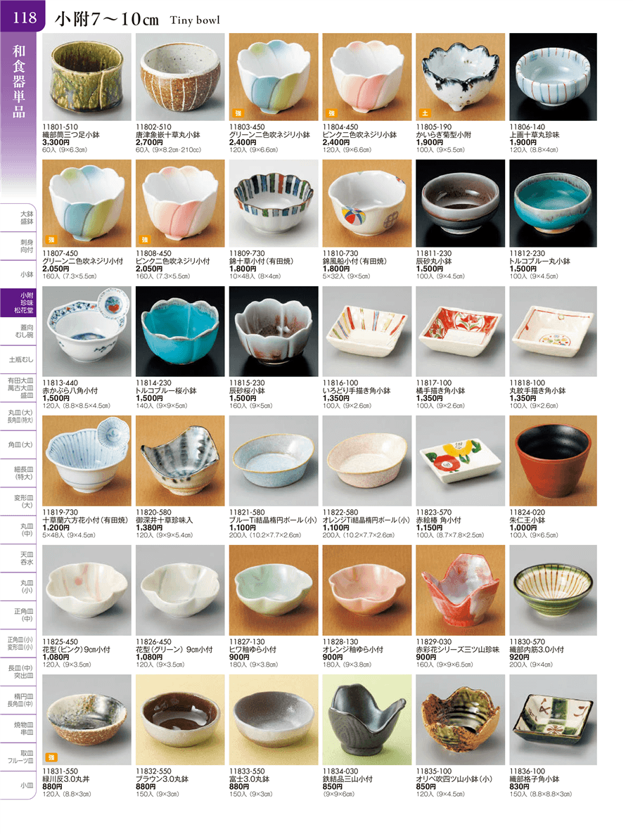 | 11816-100 | いろどり手描き角小鉢 | 上代 1,350円(税抜) 卸値 743円(税抜) (45%OFF) | ||