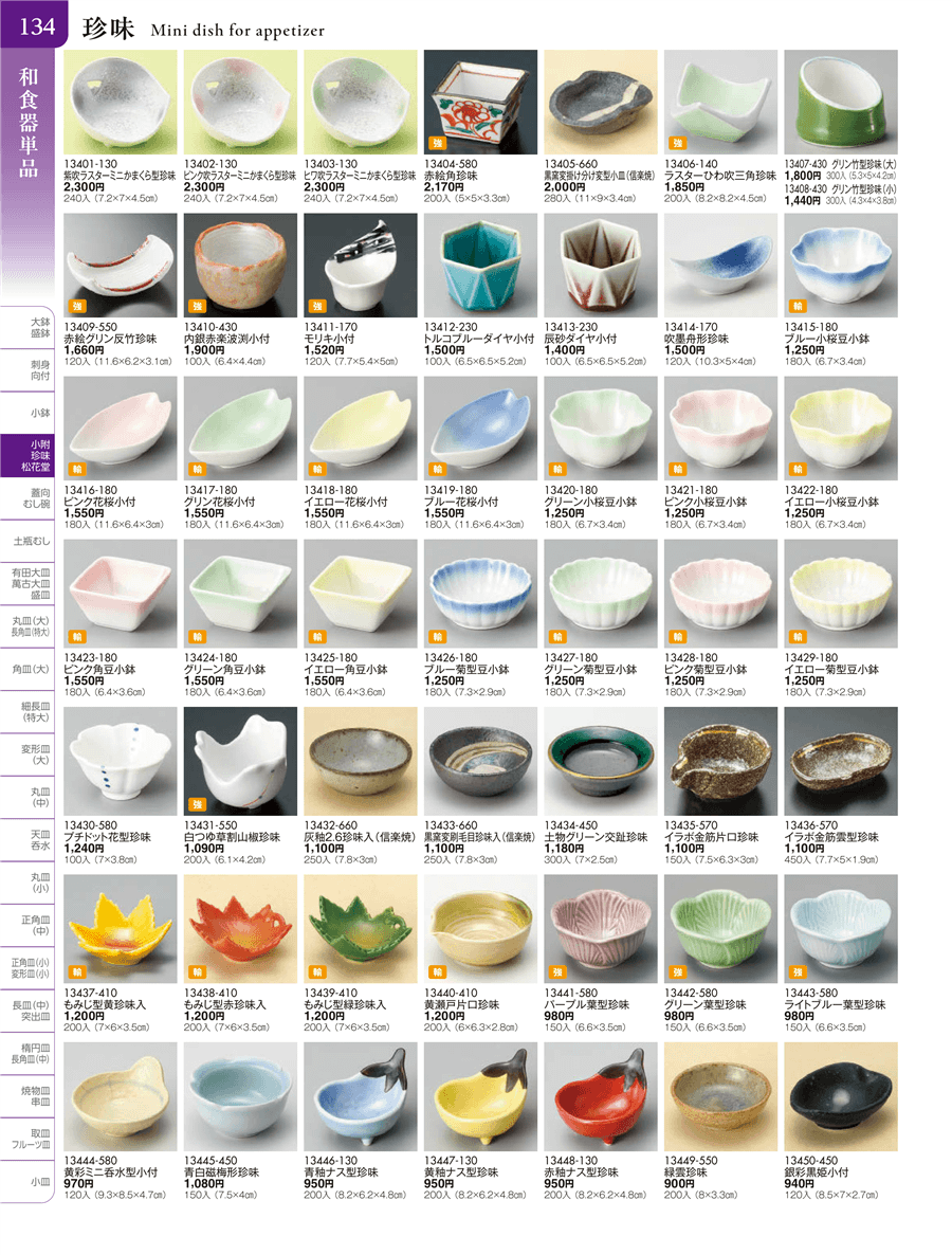 | 13445-450 | 青白磁梅形珍味 | 上代 1,080円(税抜) 卸値 594円(税抜) (45%OFF) | ||