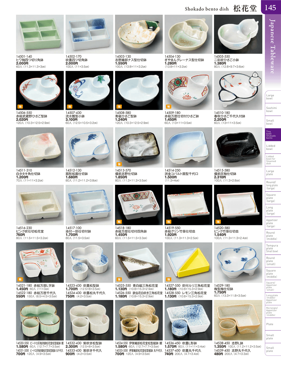 14525-550 | 青白磁三角松花堂 | 上代 1,130円(税抜) 卸値 622円(税抜) (45%OFF) | ||