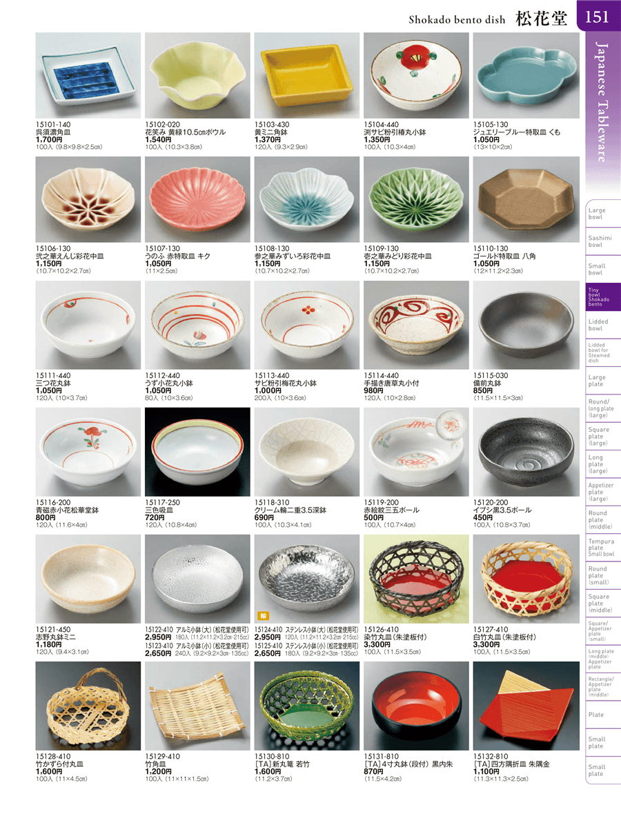 | 15124-410 | ステンレス小鉢(大)(松花堂使用可) | 上代 2,950円(税抜) 卸値 1,623円(税抜) (45%OFF) | ||