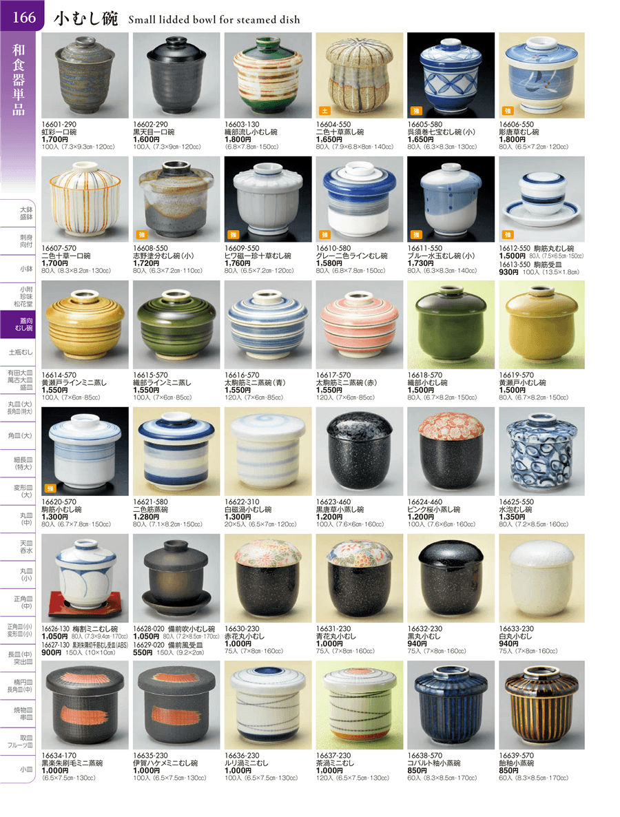 | 16620-570 | 駒筋小むし碗 | 上代 1,300円(税抜) 卸値 716円(税抜) (45%OFF) | ||