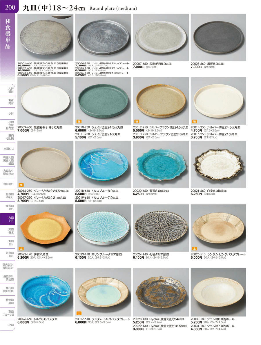 | 20010-250 | ジェイド切立24.5㎝丸皿 | 上代 6,600円(税抜) 卸値 3,631円(税抜) (45%OFF) | ||