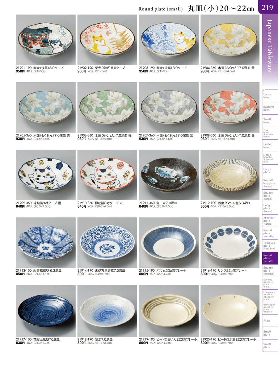| 21912-100 | 松葉タマリム型6.3深皿 | 上代 850円(税抜) 卸値 468円(税抜) (45%OFF) | ||