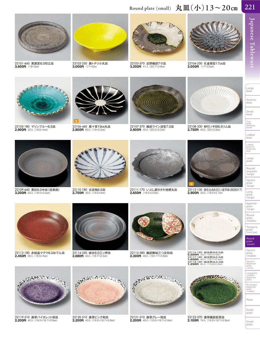 | 22102-250 | 黄トチリ小丸皿 | 上代 3,000円(税抜) 卸値 1,651円(税抜) (45%OFF) | ||