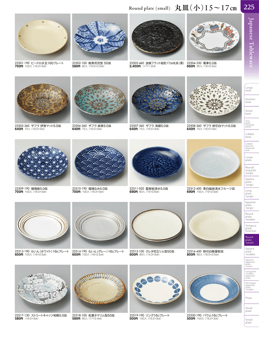 | 22509-190 | 瑠璃麻5.0皿 | 上代 700円(税抜) 卸値 386円(税抜) (45%OFF) | ||