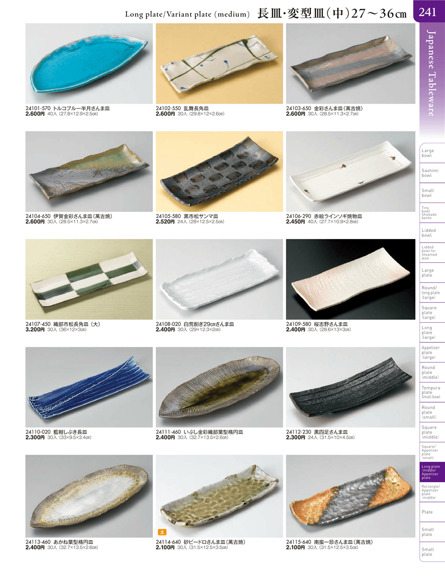 | 24102-550 | 乱舞長角皿 | 上代 2,600円(税抜) 卸値 1,431円(税抜) (45%OFF) | ||