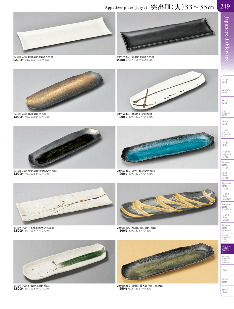| 24903-460 | 黒備前変形長皿 | 上代 1,900円(税抜) 卸値 1,045円(税抜) (45%OFF) | ||