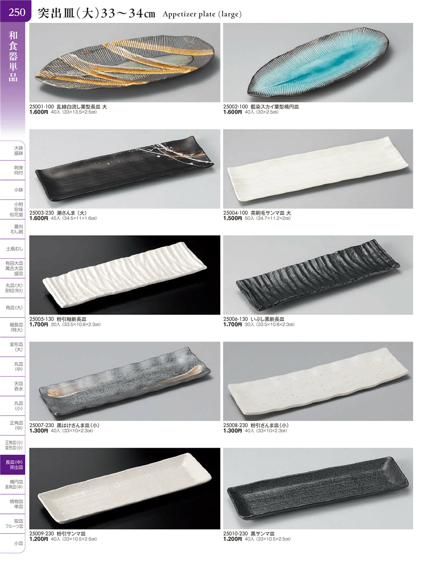 | 25006-130 | いぶし黒新長皿 | 上代 1,700円(税抜) 卸値 936円(税抜) (45%OFF) | ||