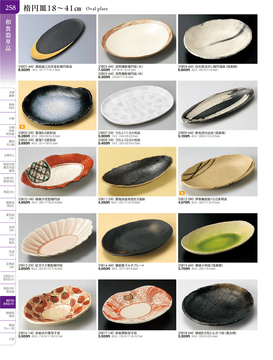 | 25802-660 | 渕荒横彫楕円皿(大) | 上代 7,500円(税抜) 卸値 4,125円(税抜) (45%OFF) | ||