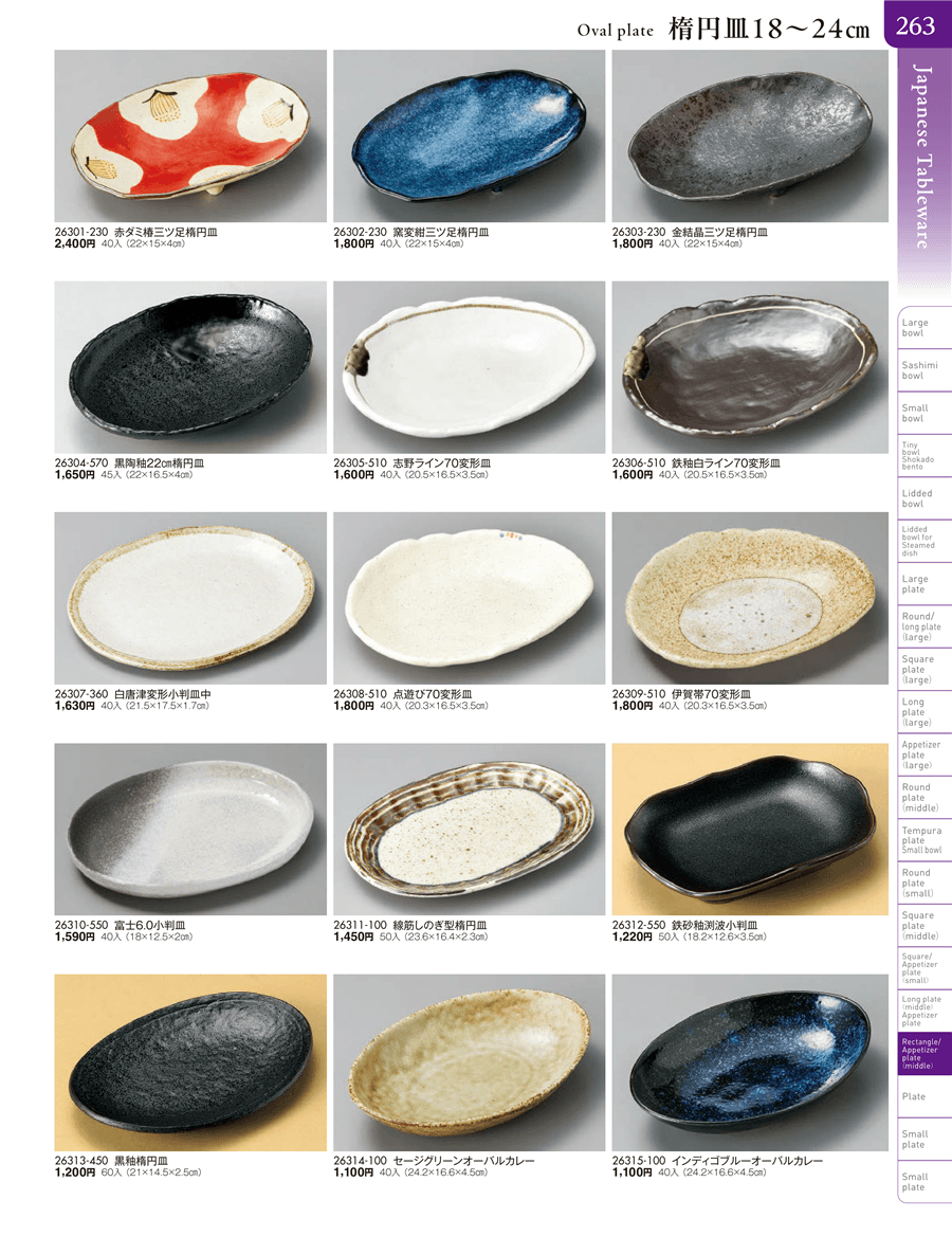 | 26311-100 | 線筋しのぎ型楕円皿 | 上代 1,450円(税抜) 卸値 798円(税抜) (45%OFF) | ||