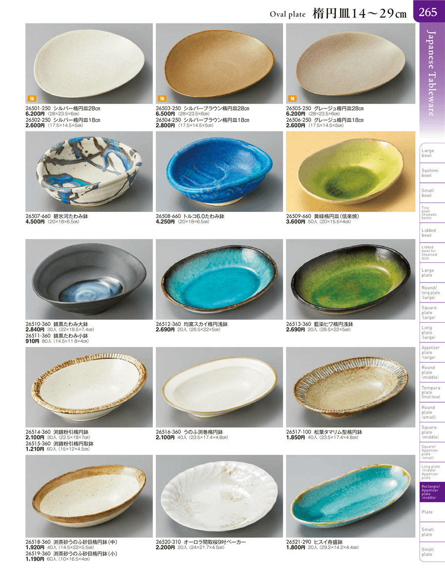 26512-360 | 均窯スカイ楕円浅鉢 | 上代 2,690円(税抜) 卸値 1,480円(税抜) (45%OFF) | ||