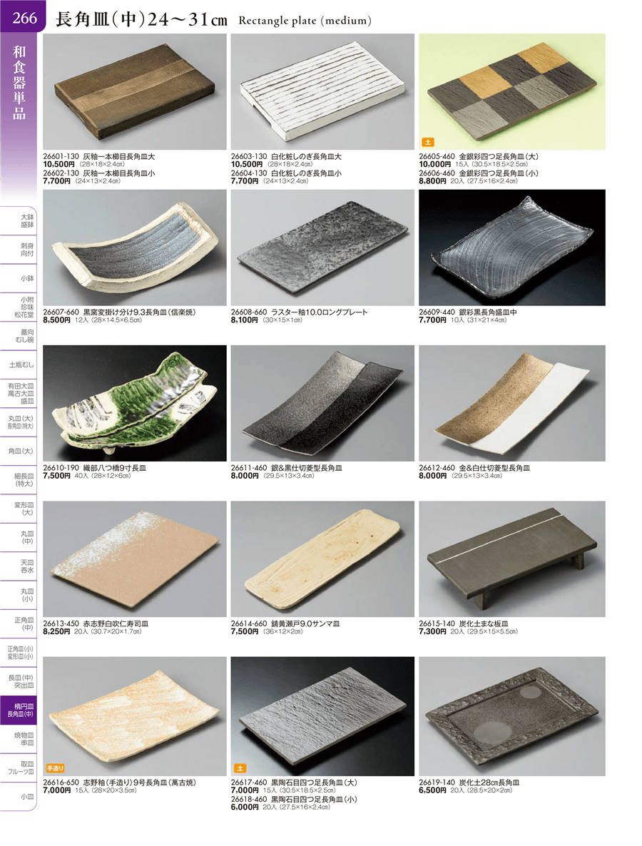 | 26608-660 | ラスター釉10.0ロングプレート | 上代 8,100円(税抜) 卸値 4,455円(税抜) (45%OFF) | ||