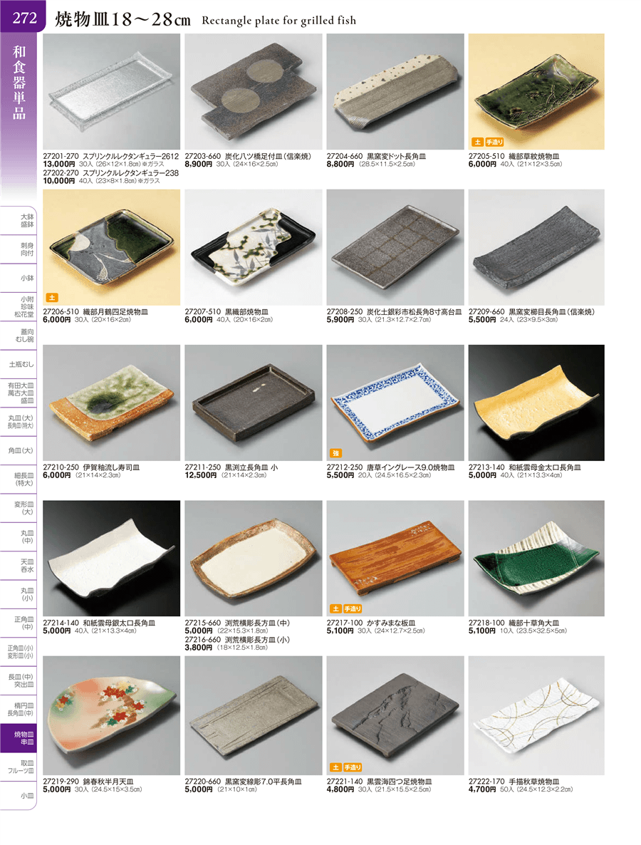 | 27216-660 | 渕荒横彫長方皿(小) | 上代 3,800円(税抜) 卸値 2,090円(税抜) (45%OFF) | ||