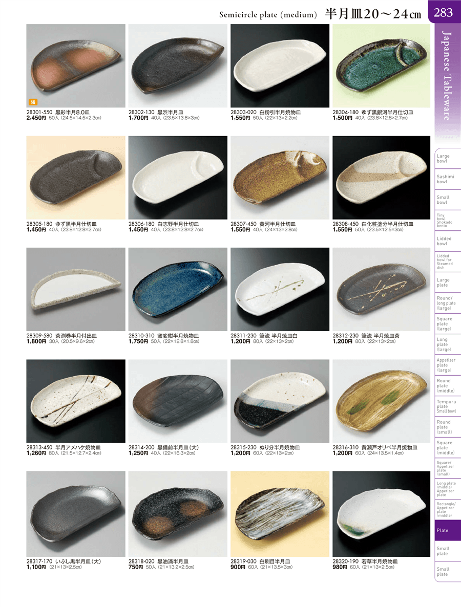 | 28315-230 | ぬり分半月焼物皿 | 上代 1,200円(税抜) 卸値 660円(税抜) (45%OFF) | ||