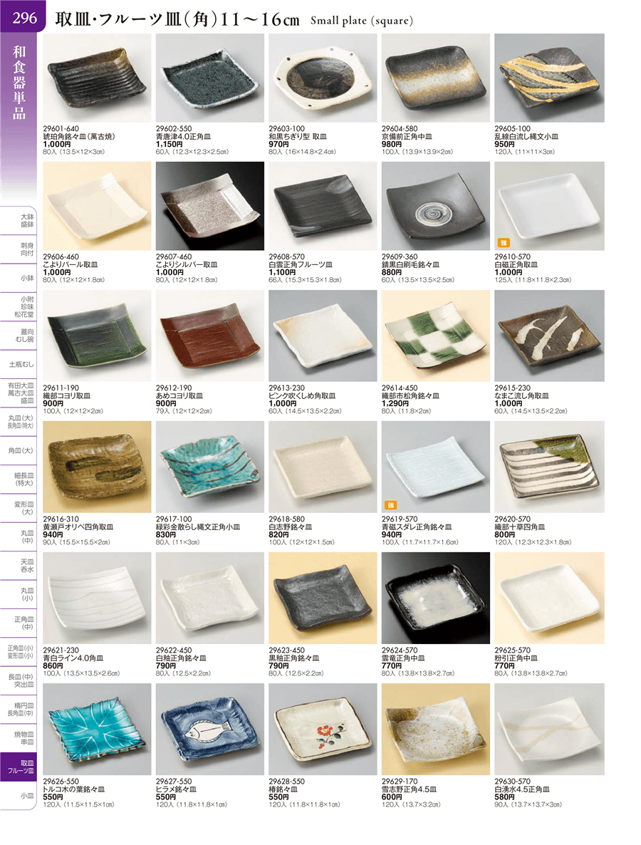 | 29604-580 | 京備前正角中皿 | 上代 980円(税抜) 卸値 539円(税抜) (45%OFF) | ||