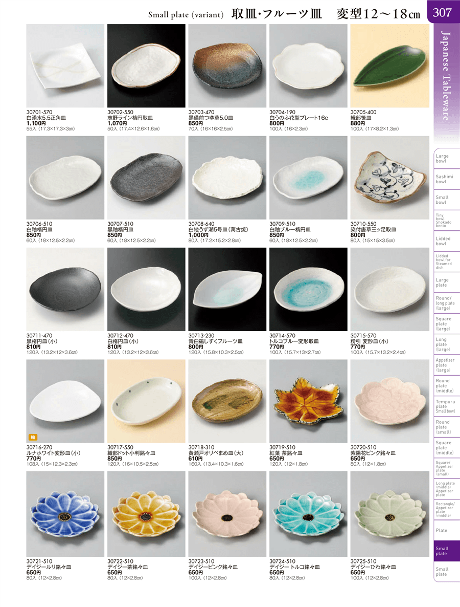 | 30716-270 | ルナホワイト変形皿(小) | 上代 770円(税抜) 卸値 424円(税抜) (45%OFF) | ||
