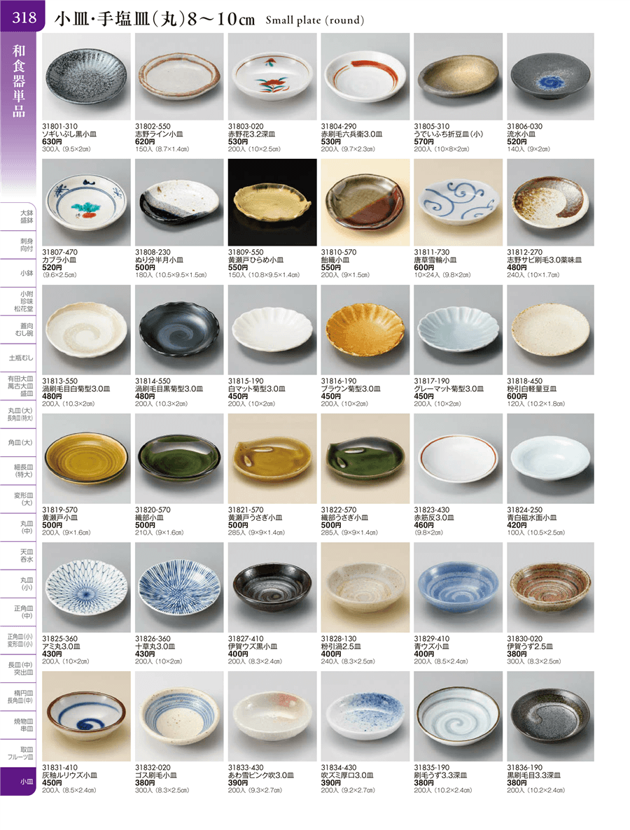 | 31805-310 | うでいふち折豆皿(小) | 上代 570円(税抜) 卸値 314円(税抜) (45%OFF) | ||