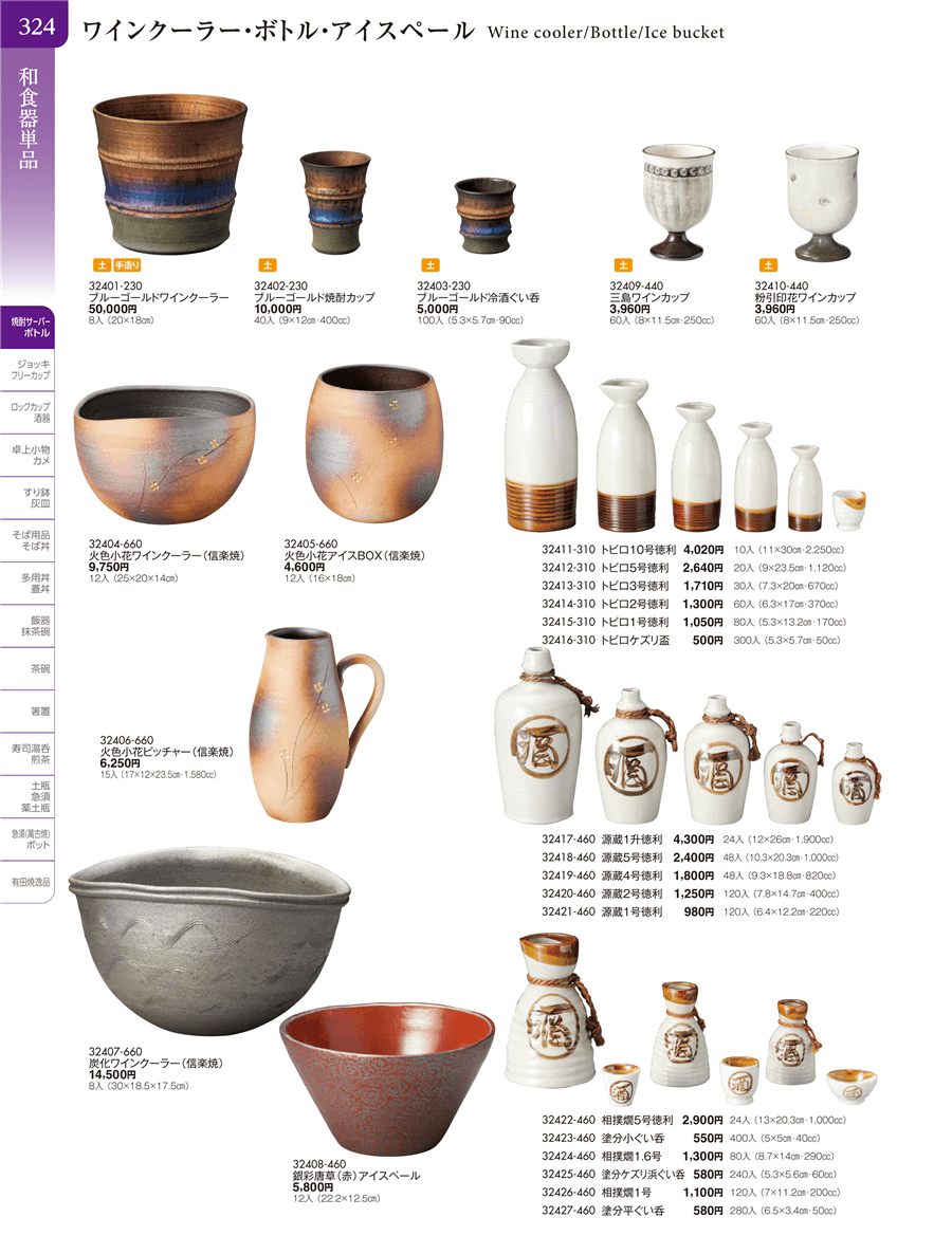 | 32411-310 | トビ口10号徳利 | 上代 4,020円(税抜) 卸値 2,211円(税抜) (45%OFF) | ||