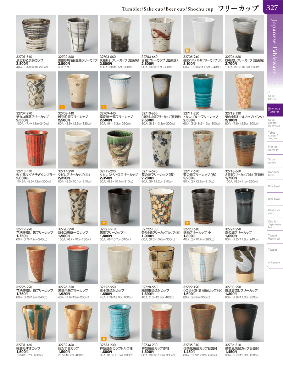 | 32735-310 | 信楽風焼酎カップ目盛付 | 上代 1,450円(税抜) 卸値 798円(税抜) (45%OFF) | ||