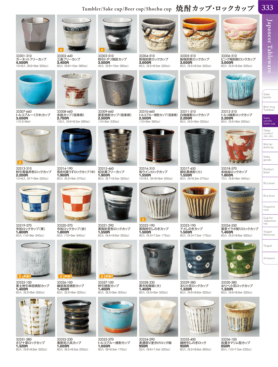 | 33312-510 | トルコ線彫ロックカップ | 上代 2,200円(税抜) 卸値 1,210円(税抜) (45%OFF) | ||
