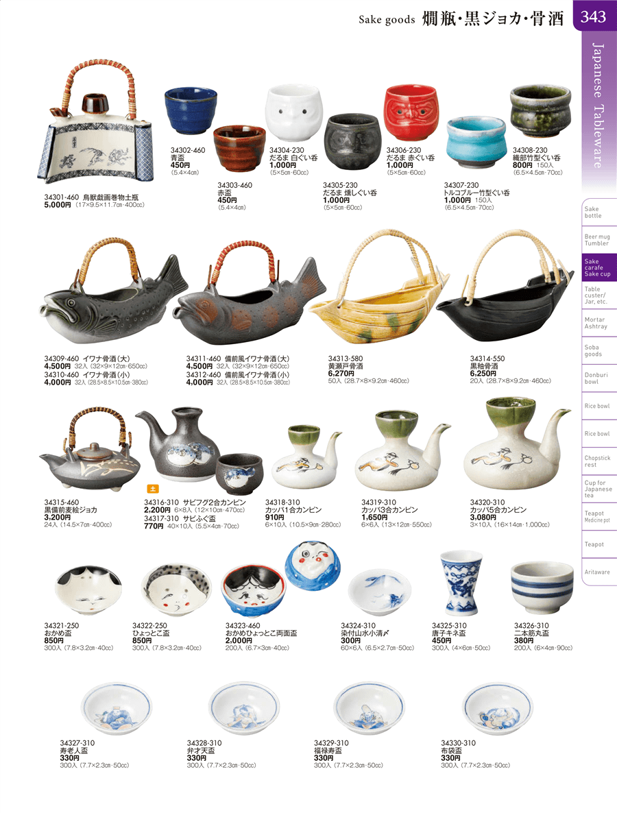 | 34323-460 | おかめひょっとこ両面盃 | 上代 2,000円(税抜) 卸値 1,100円(税抜) (45%OFF) | ||