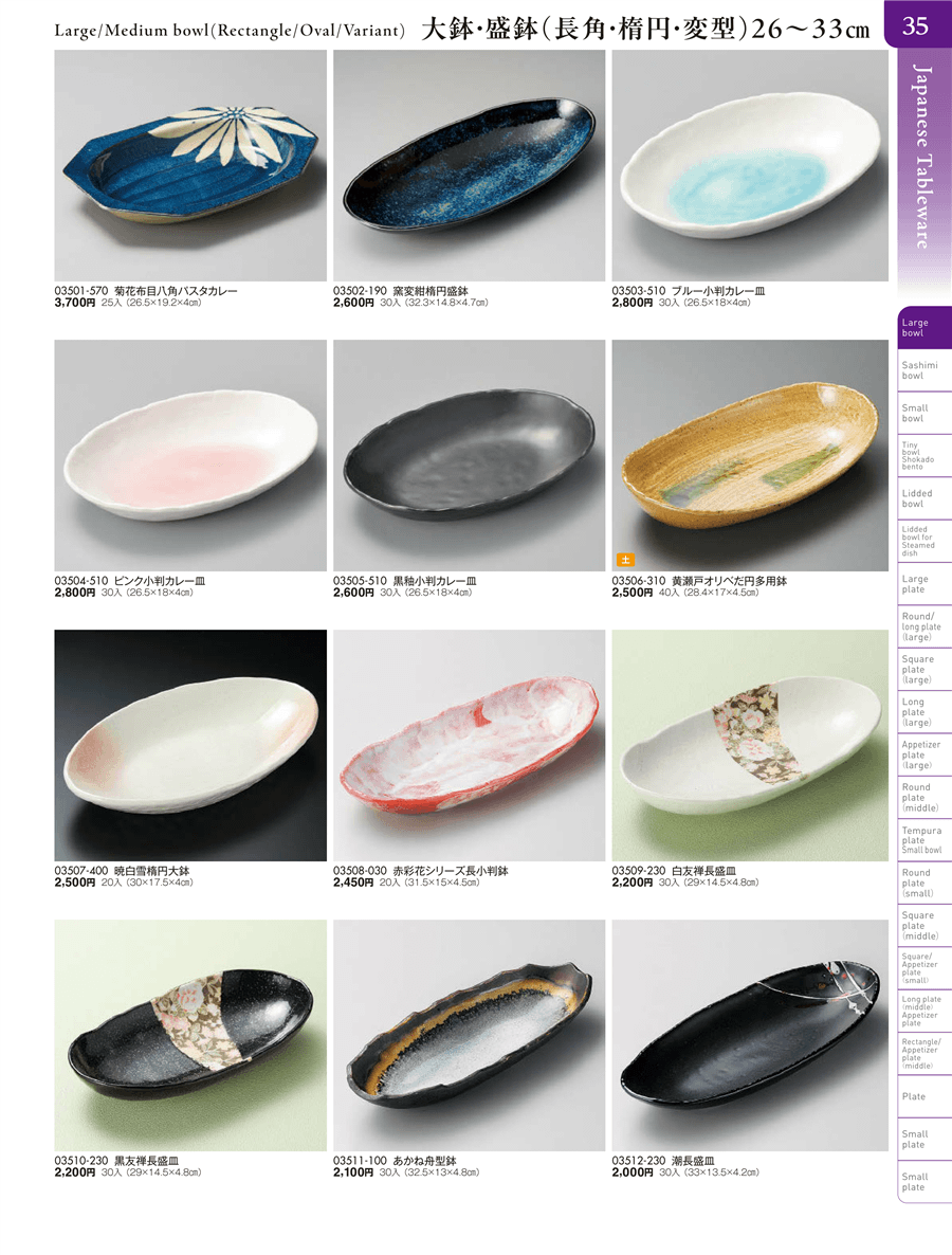 | 03505-510 | 黒釉小判カレー皿 | 上代 2,600円(税抜) 卸値 1,431円(税抜) (45%OFF) | ||