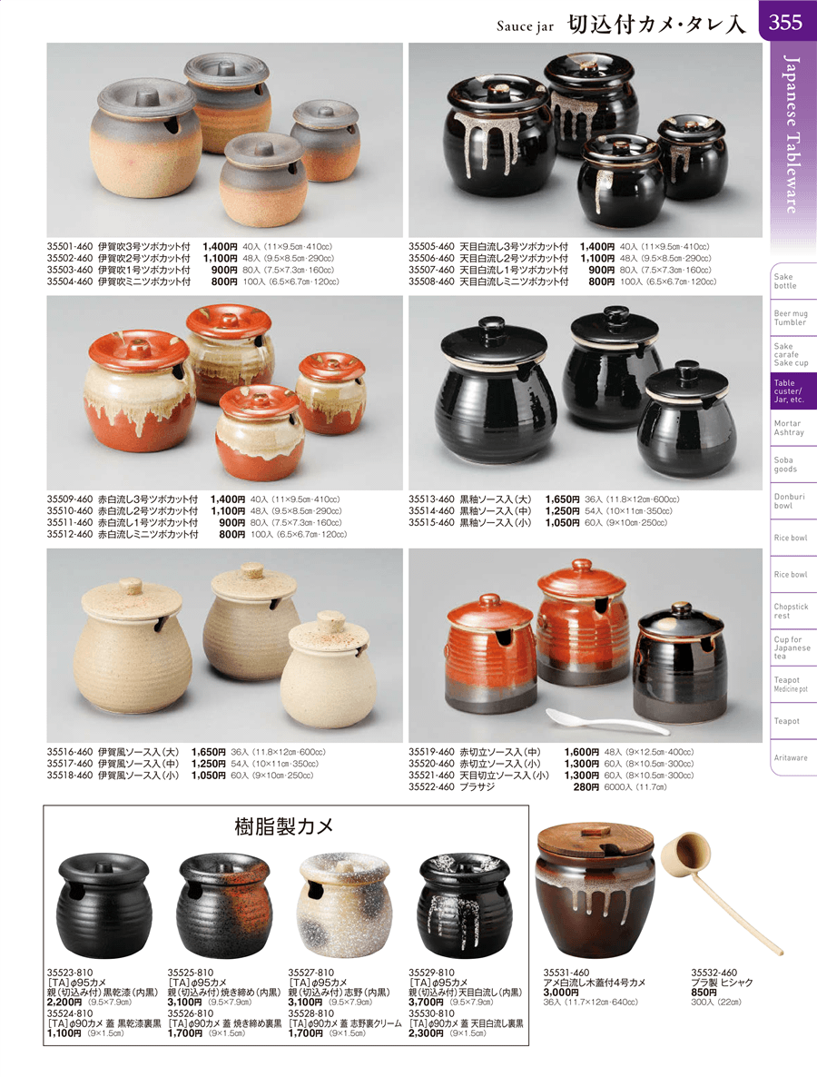 | 35513-460 | 黒釉ソース入(大) | 上代 1,650円(税抜) 卸値 908円(税抜) (45%OFF) | ||