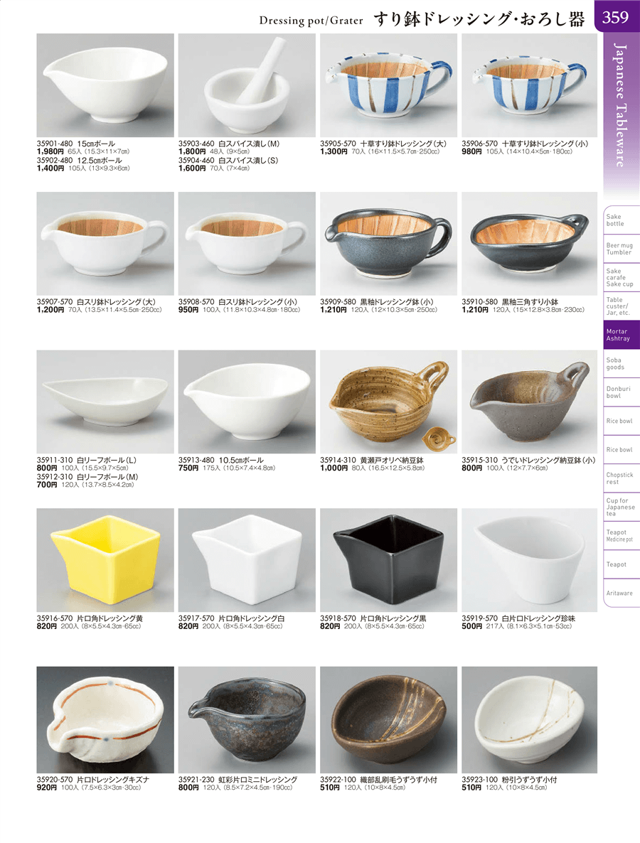 | 35908-570 | 白スリ鉢ドレッシング(小) | 上代 950円(税抜) 卸値 523円(税抜) (45%OFF) | ||