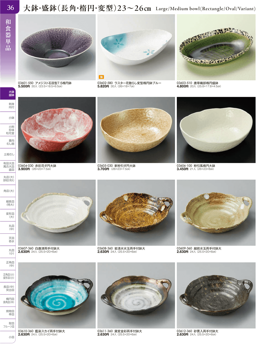 | 03606-100 | 粉引風楕円大鉢 | 上代 3,450円(税抜) 卸値 1,898円(税抜) (45%OFF) | ||