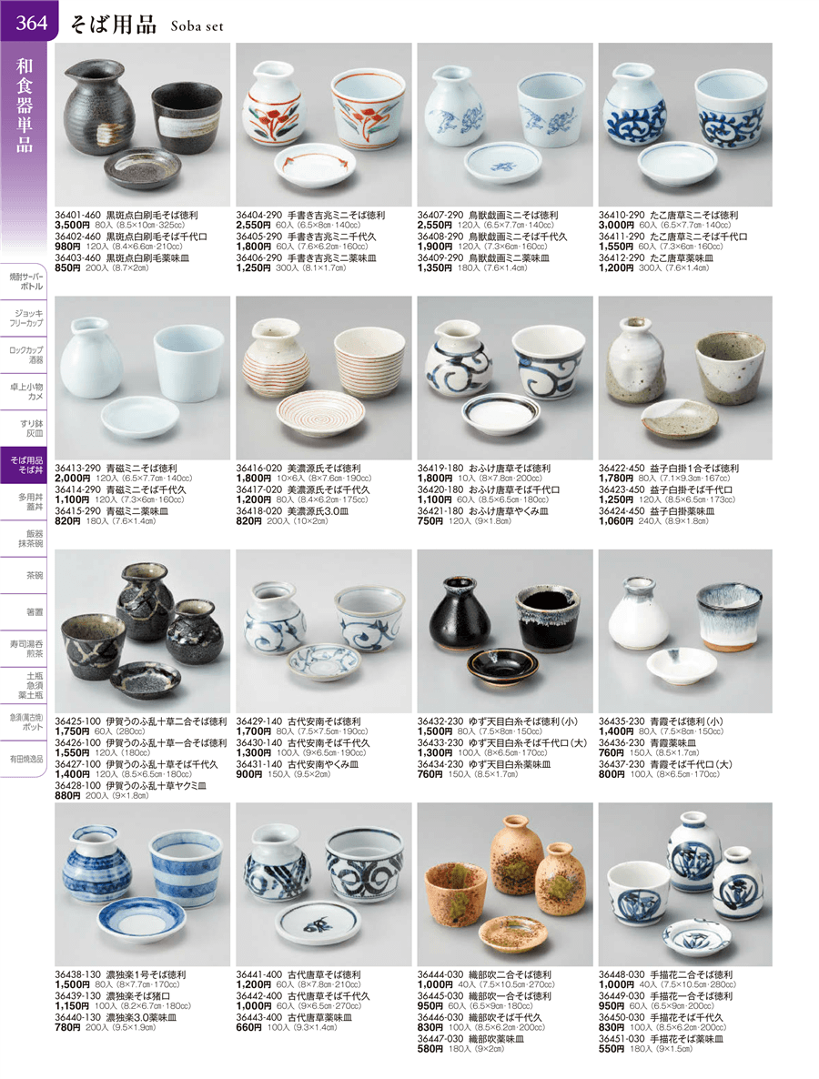 | 36410-290 | たこ唐草ミニそば徳利 | 上代 3,000円(税抜) 卸値 1,651円(税抜) (45%OFF) | ||