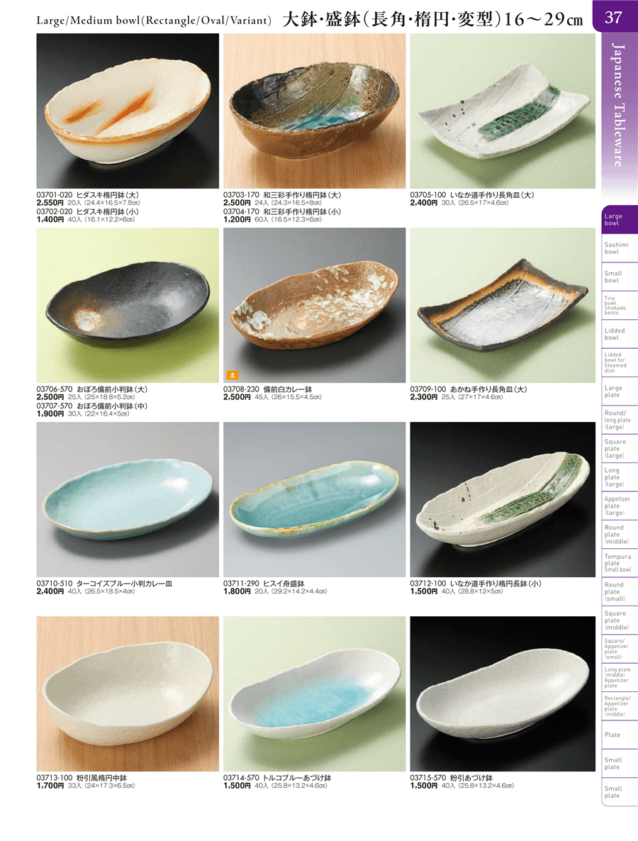 | 03702-020 | ヒダスキ楕円鉢(小) | 上代 1,400円(税抜) 卸値 771円(税抜) (45%OFF) | ||