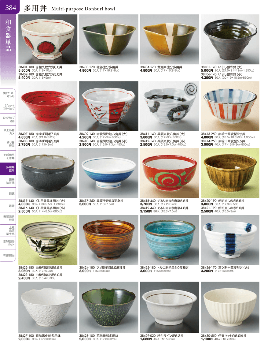 | 38402-180 | 赤絵丸紋六角5.0丼 | 上代 5,400円(税抜) 卸値 2,971円(税抜) (45%OFF) | ||