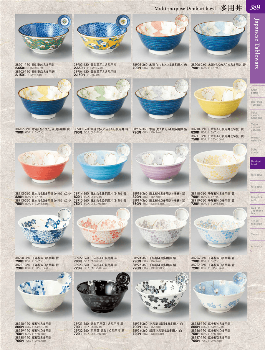 | 38924-360 | 千年桜4.8多用丼 紫 | 上代 790円(税抜) 卸値 435円(税抜) (45%OFF) | ||
