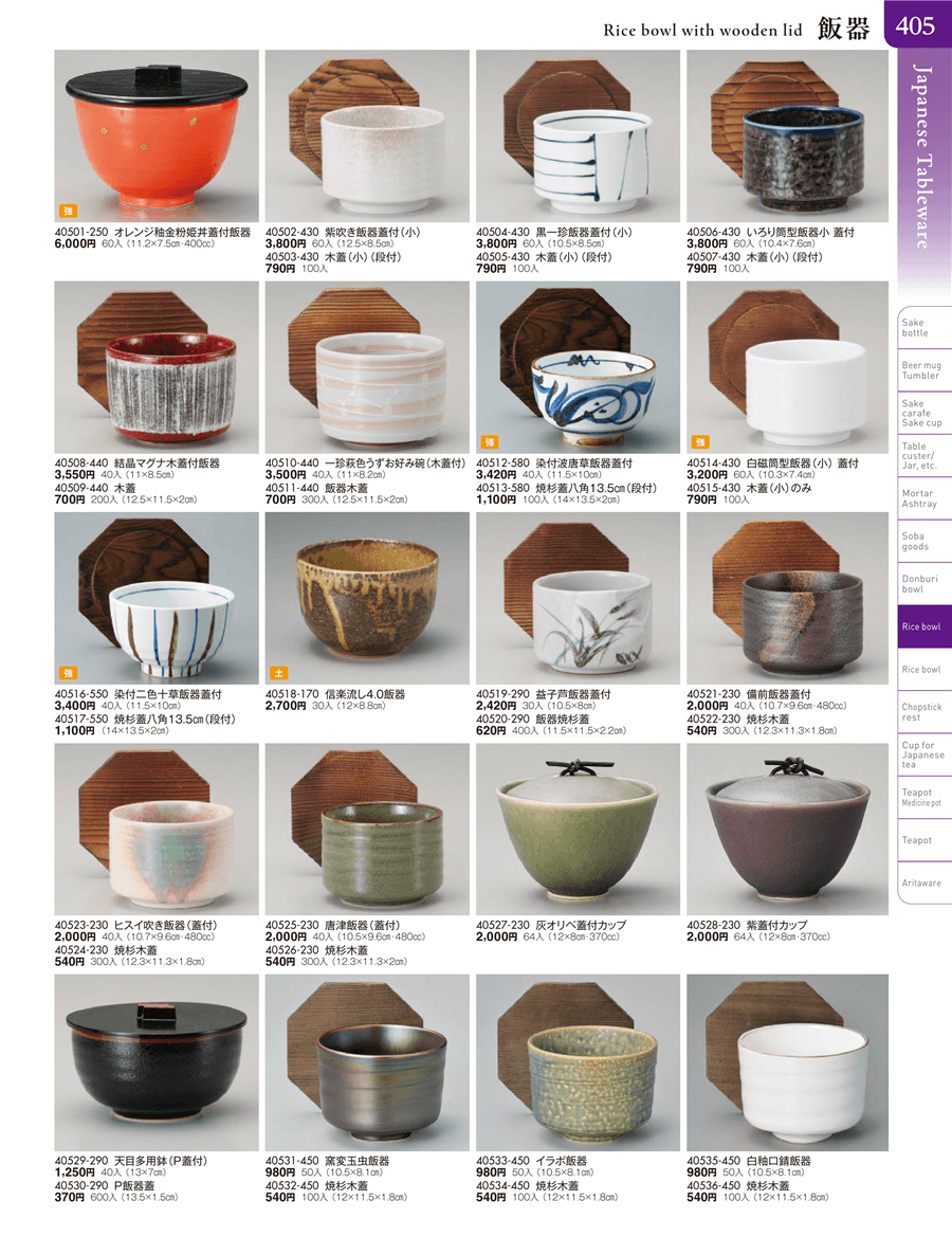 | 40520-290 | 飯器焼杉蓋 | 上代 620円(税抜) 卸値 341円(税抜) (45%OFF) | ||