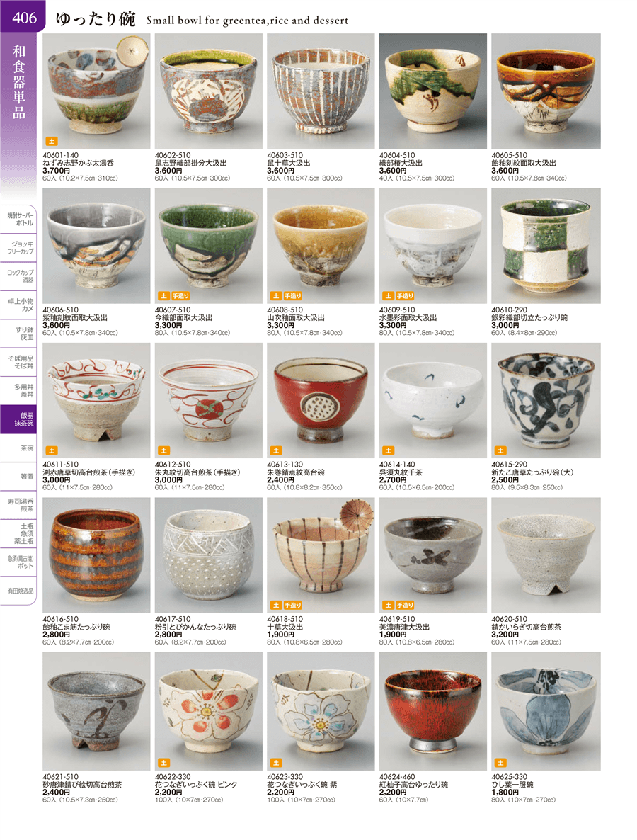 | 40616-510 | 飴釉こま筋たっぷり碗 | 上代 2,800円(税抜) 卸値 1,541円(税抜) (45%OFF) | ||
