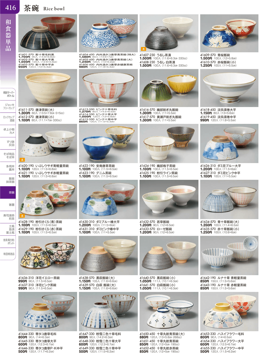 | 41611-570 | 唐津茶碗(大) | 上代 1,300円(税抜) 卸値 716円(税抜) (45%OFF) | ||