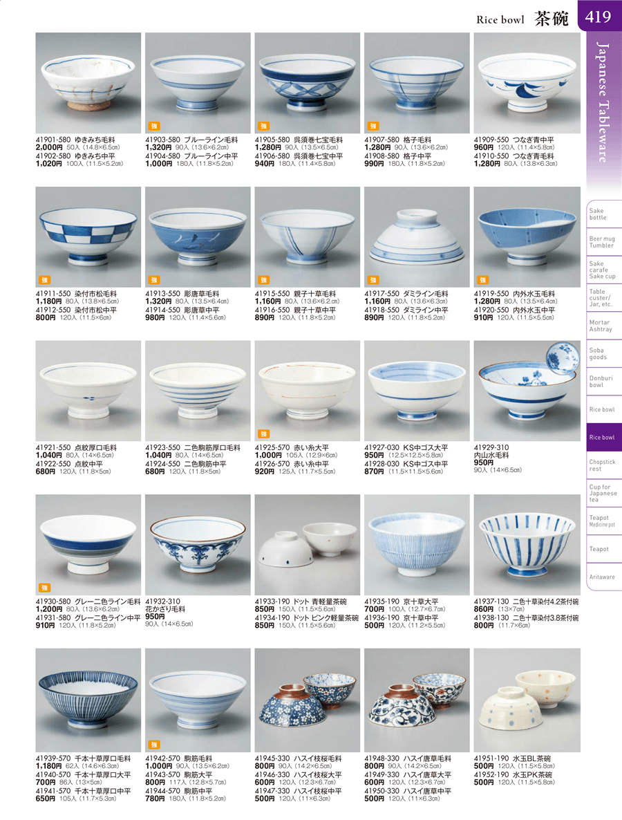 | 41937-130 | 二色十草染付4.2茶付碗 | 上代 860円(税抜) 卸値 474円(税抜) (45%OFF) | ||