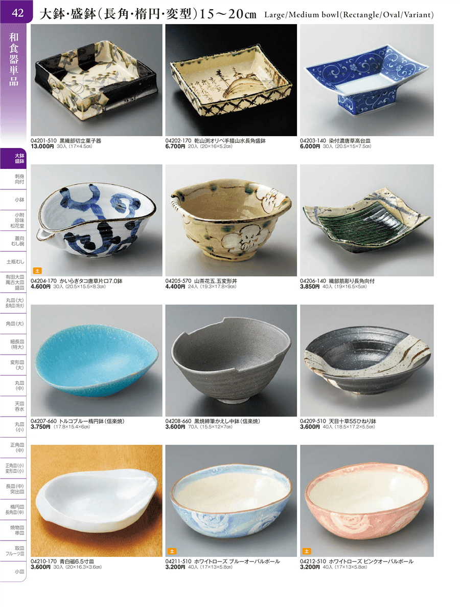 | 04206-140 | 織部筋彫り長角向付 | 上代 3,850円(税抜) 卸値 2,118円(税抜) (45%OFF) | ||