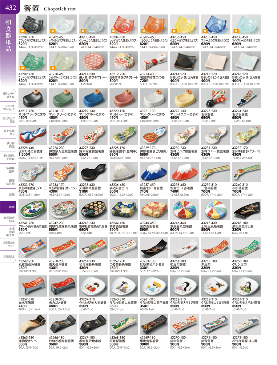 | 43235-430 | 天目瓢箪型箸置 | 上代 310円(税抜) 卸値 171円(税抜) (45%OFF) | ||