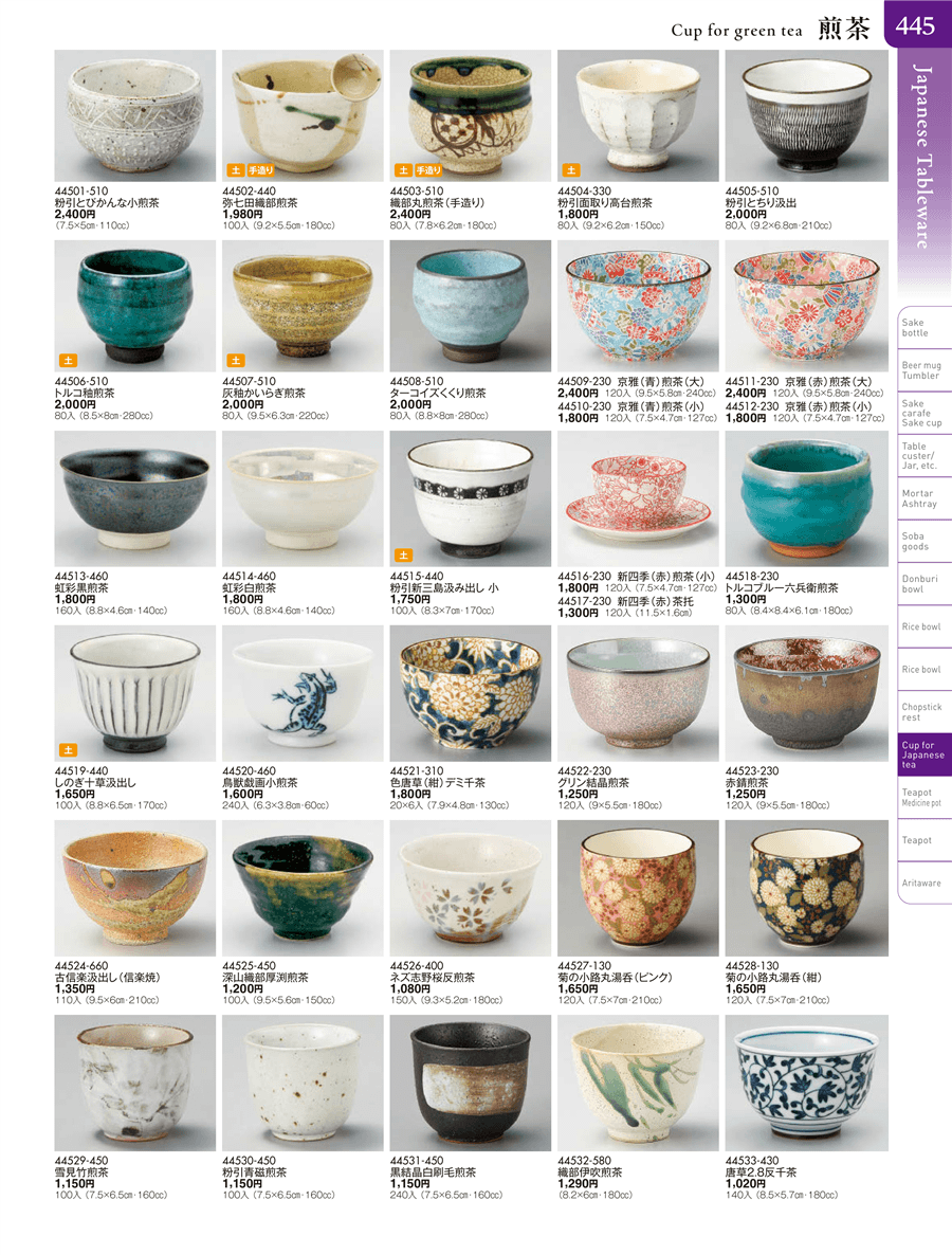 | 44512-230 | 京雅(赤)煎茶(小) | 上代 1,800円(税抜) 卸値 991円(税抜) (45%OFF) | ||