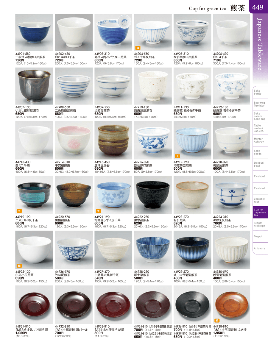 | 44935-810 | [A]3.5寸千筋茶托 新溜 | 上代 650円(税抜) 卸値 358円(税抜) (45%OFF) | ||