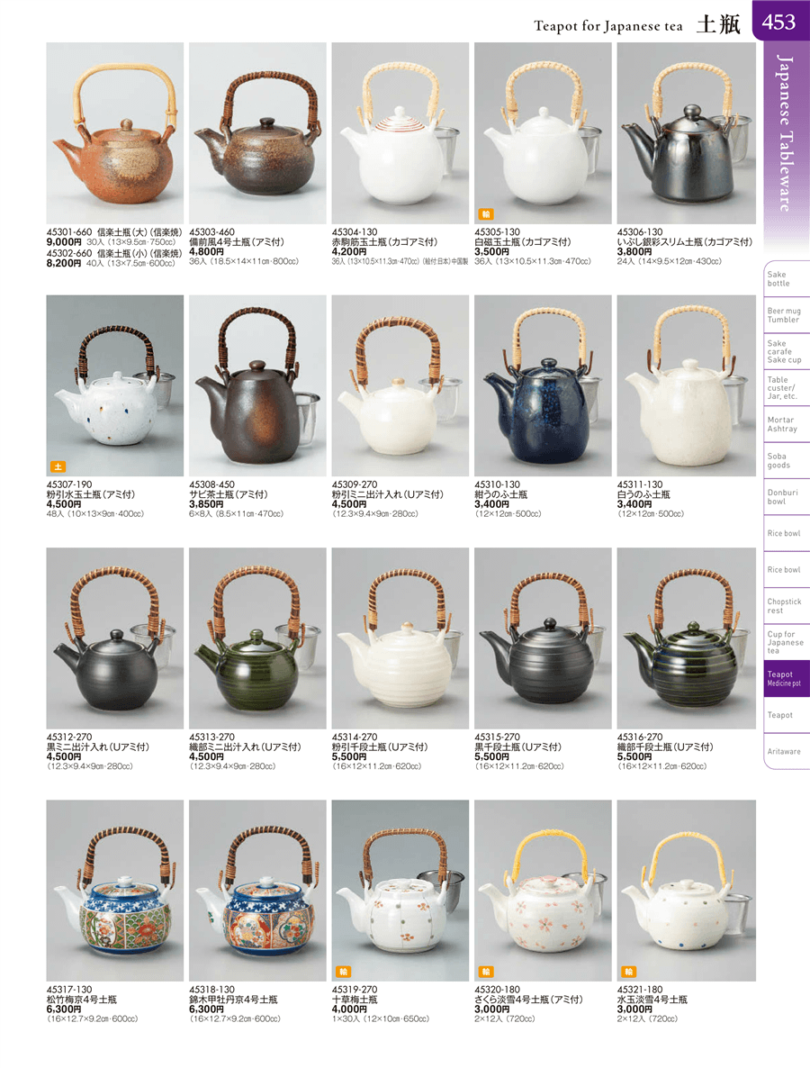 45304-130赤駒筋玉土瓶(カゴアミ付)上代 4,200円(税抜)