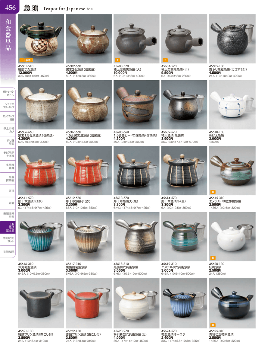 | 45625-310 | 青釉切立帯網急須 | 上代 2,500円(税抜) 卸値 1,375円(税抜) (45%OFF) | ||
