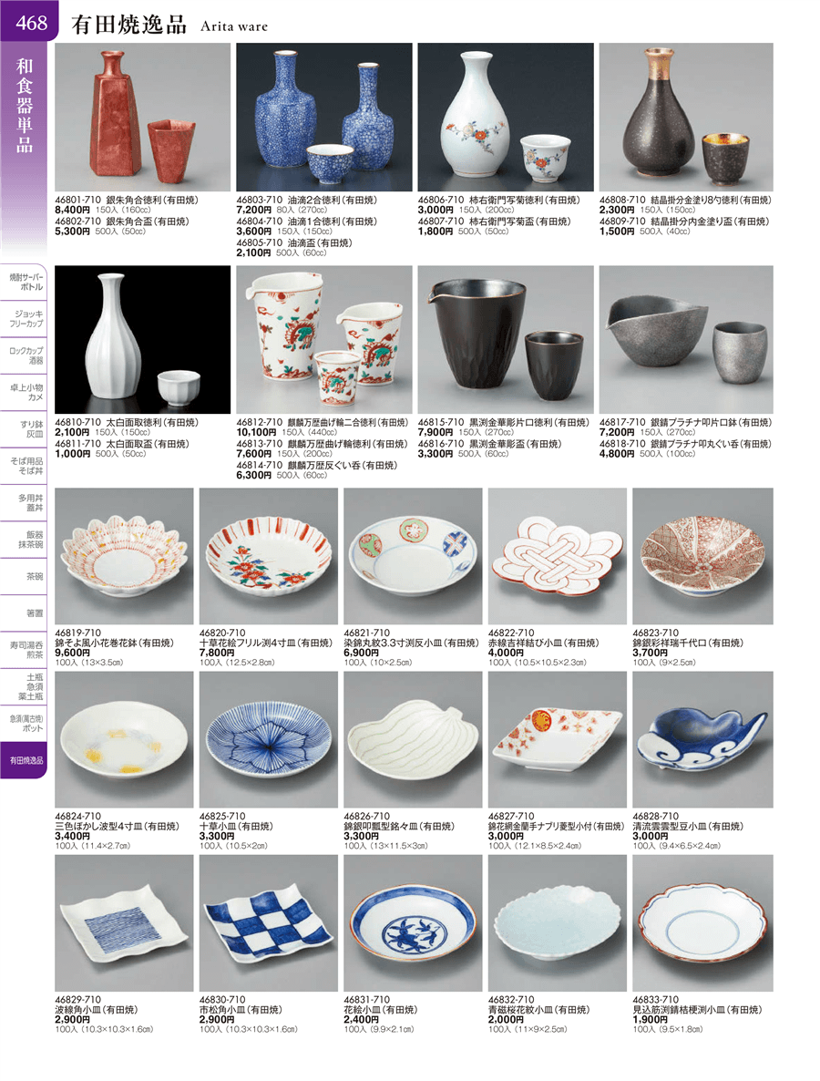 | 46803-710 | 油滴2合徳利(有田焼) | 上代 7,200円(税抜) 卸値 3,961円(税抜) (45%OFF) | ||