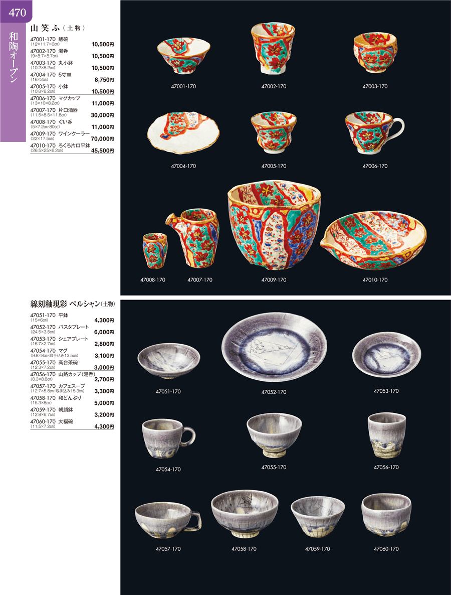 | 47056-170 | 線刻釉現彩 ペルシャン 山路カップ(湯呑) | 上代 2,700円(税抜) 卸値 1,486円(税抜) (45%OFF) | ||