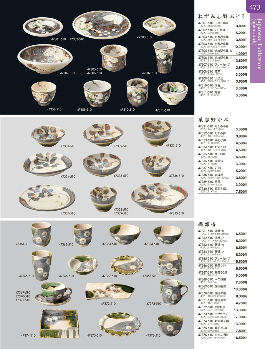 | 47338-510 | 鼡志野かぶ 大汲出 | 上代 3,600円(税抜) 卸値 1,981円(税抜) (45%OFF) | ||