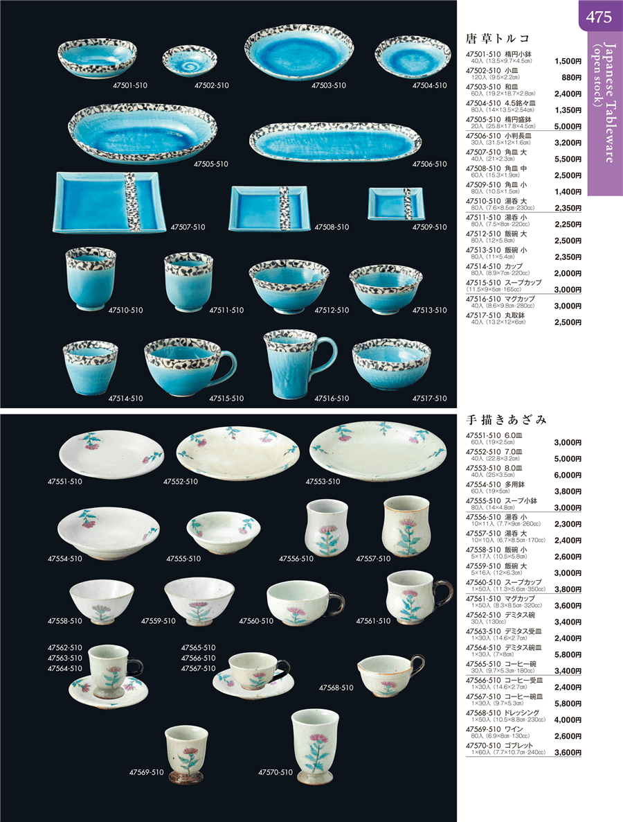 | 47503-510 | 唐草トルコ 和皿 | 上代 2,400円(税抜) 卸値 1,320円(税抜) (45%OFF) | ||