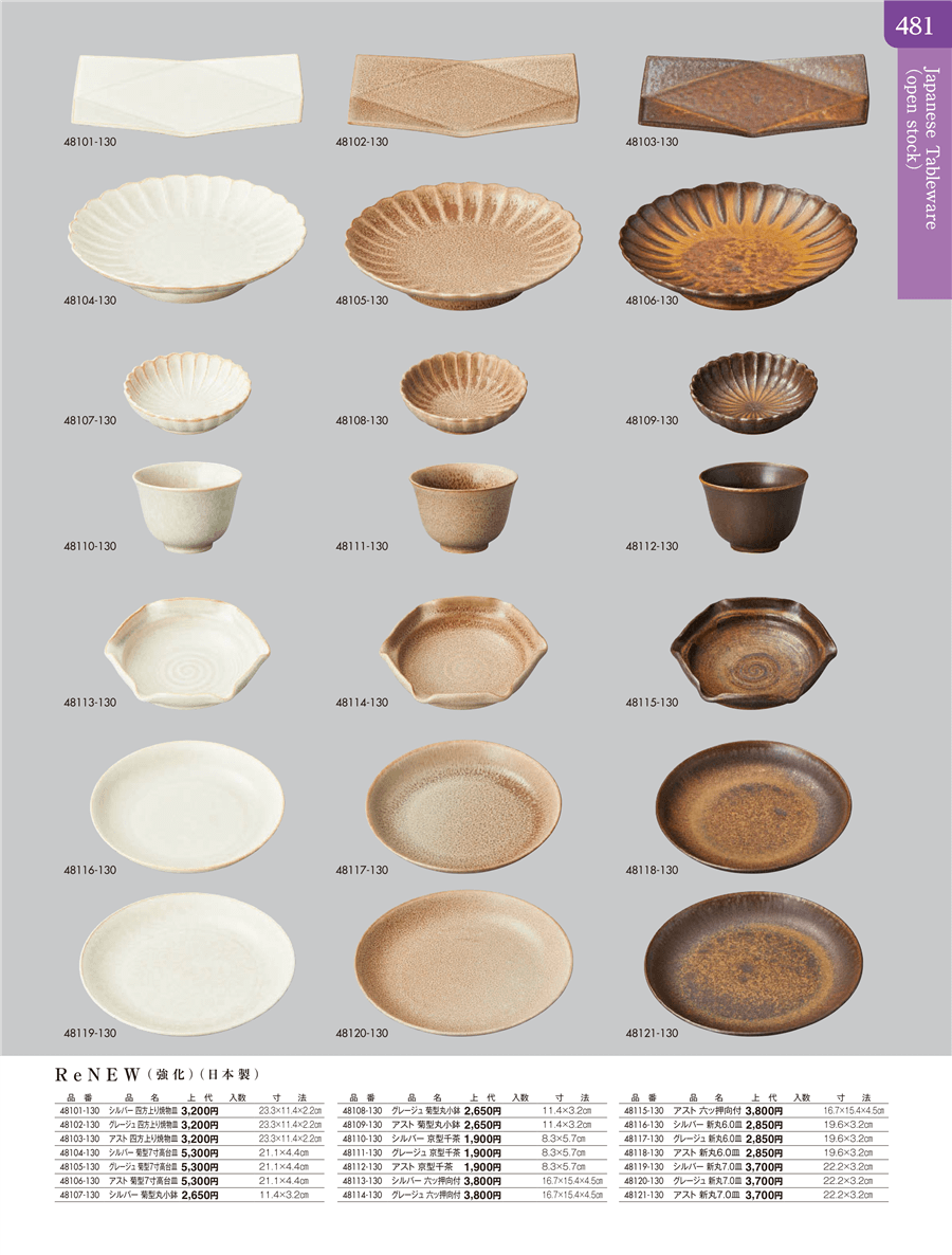 | 48115-130 | ReNEW アスト 六ッ押向付 | 上代 3,800円(税抜) 卸値 2,090円(税抜) (45%OFF) | ||
