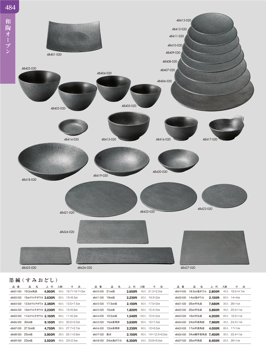 | 48424-020 | 墨縅(すみおどし) 24㎝平長角皿 | 上代 7,960円(税抜) 卸値 4,378円(税抜) (45%OFF) | ||