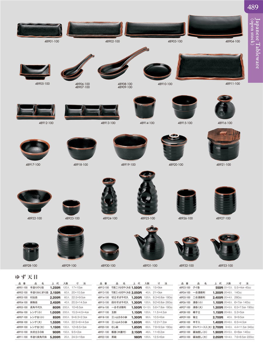 | 48933-100 | ゆず天目 醤油差し(大) | 上代 2,050円(税抜) 卸値 1,128円(税抜) (45%OFF) | ||